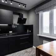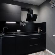 Кухня в нестандартной цветовой гамме укомплектована импортной  техникой