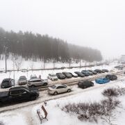 Большая парковка под шлагбаумом.
