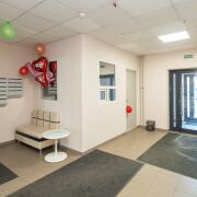 Чистый, современный подъезд и ухоженная придомовая территория. Во дворе — зеленые лужайки и современные детские площадки. Проблема с парковкой решена: вокруг дома достаточно мест, а для максимального комфорта имеется возможность приобрести 2 машиноместа в собственность за дополнительную плату.