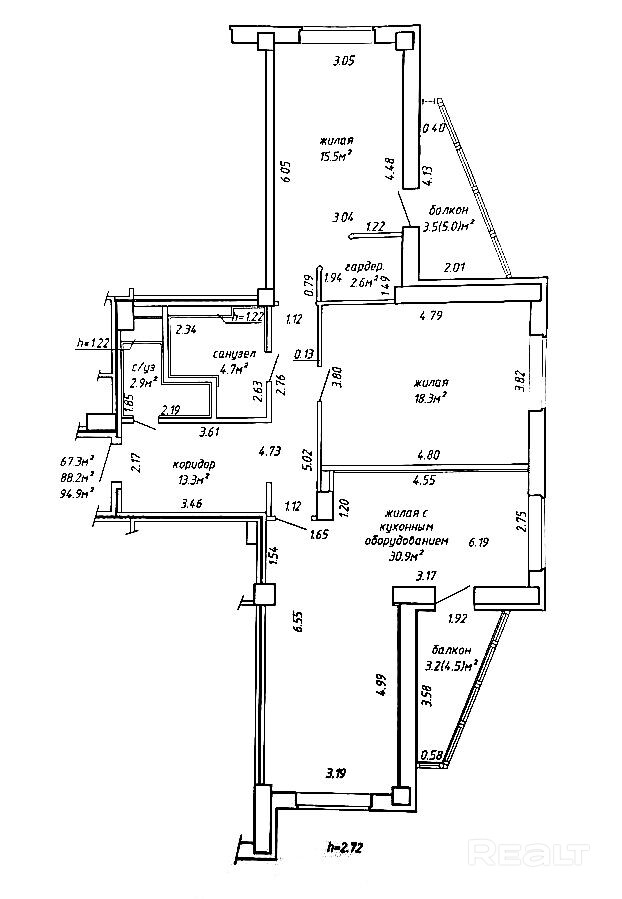 Общая площадь по СНБ — 94,9 кв.м. Продуманная до мелочей эргономика в формате евротрешки: