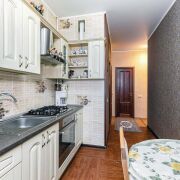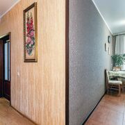 -В квартире выполнен хороший ремонт: на полу уложен ламинат, на кухне и в санузле - плитка. Стены оклеены обоями, установлены окна ПВХ и качественные межкомнатные двери из массива.