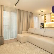 -Остаётся всё, что действительно важно для качественной жизни: премиальные блэкаут-шторы создают идеальные условия для сна, бытовая техника Mansfield на гарантии, есть стиральная и сушильная машины, микроволновка Bosch и большой 55-дюймовый телевизор LG - уже можно устраивать свои первые кино-вечера сразу после переезда.