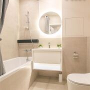 -Санузел совмещенный, здесь установлена качественная сантехника от ведущих брендов.