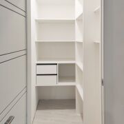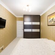 - Удобные шкафы-купе в спальне и прихожей, а также отдельная гардеробная комната позволяют хранить вещи аккуратно и компактно;