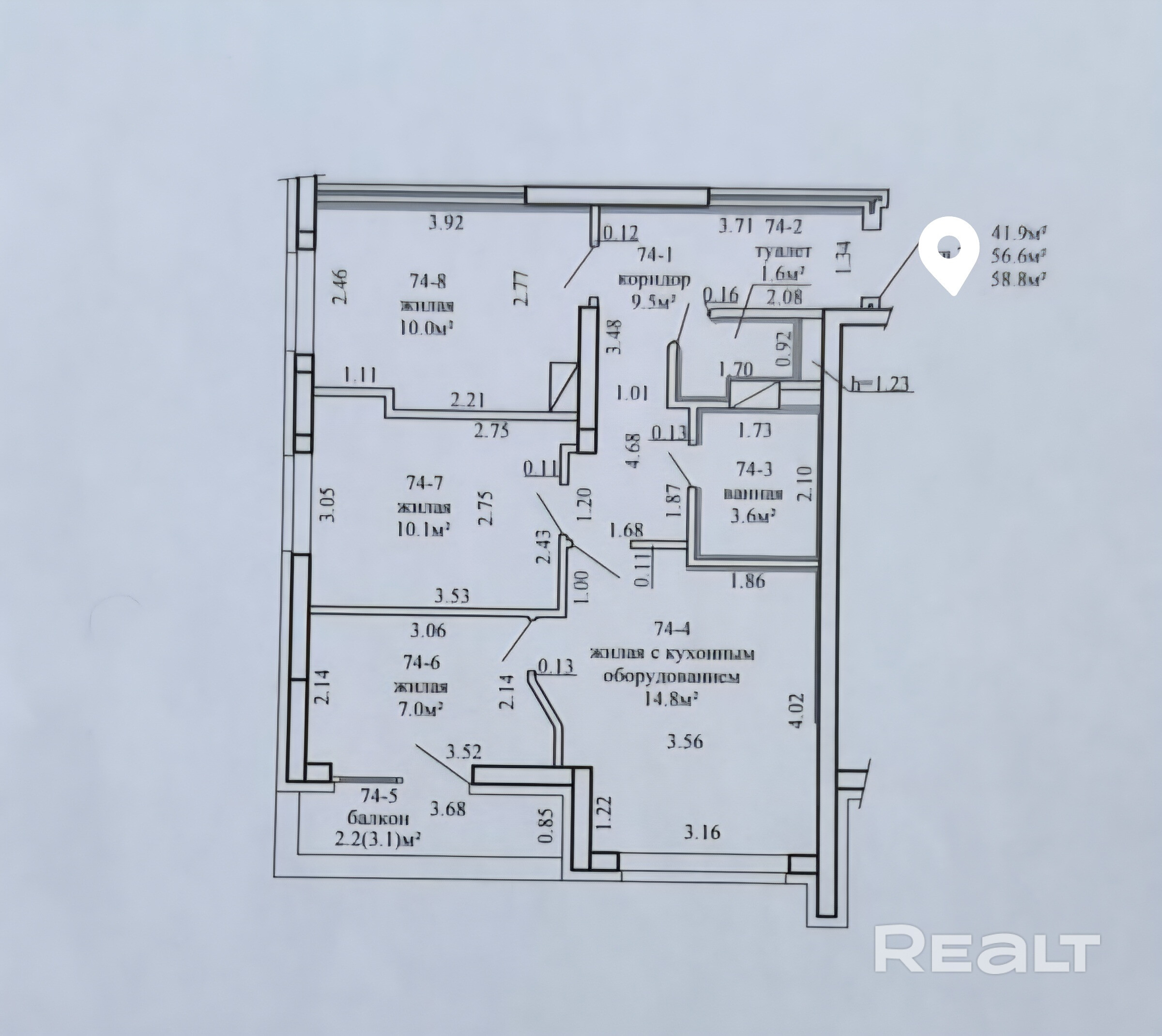 58.8 м²