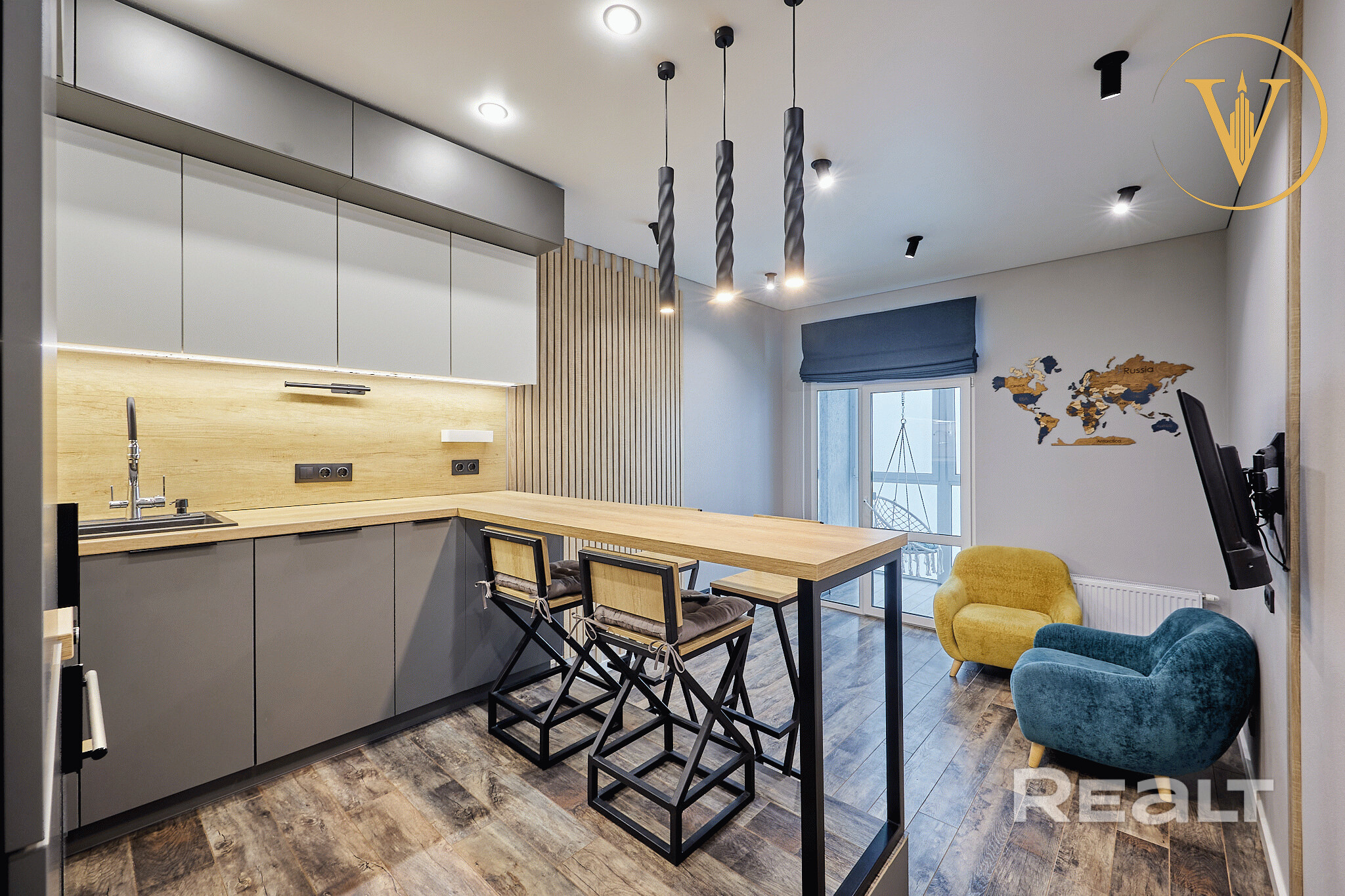 - Кухня совмещена с гостиной