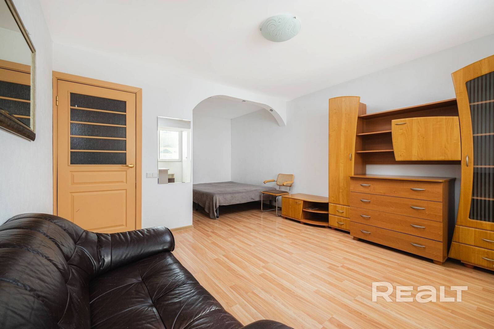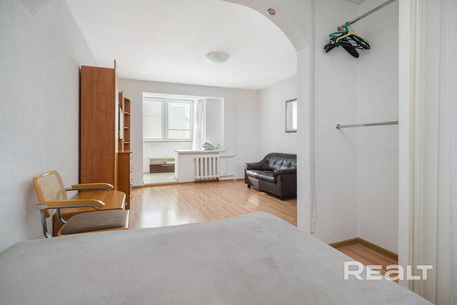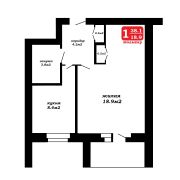 Большая комната 18.9 м.кв. с выделенной нишей для отдыха.