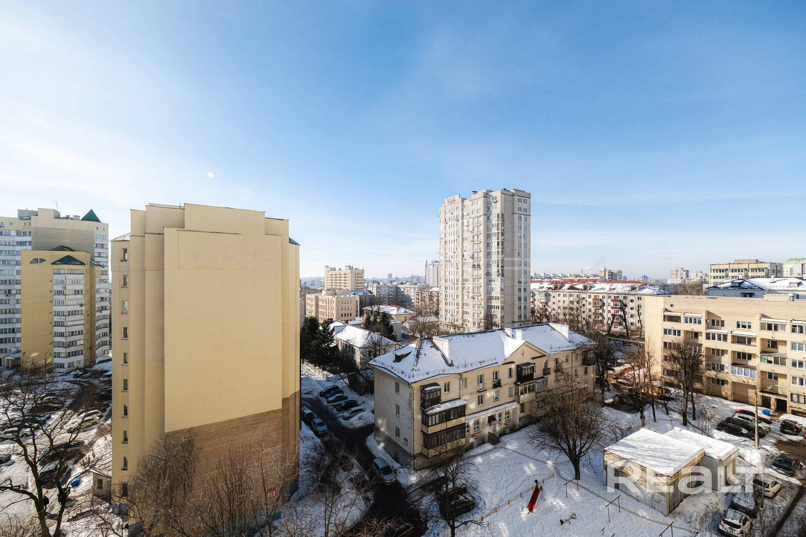 Окна квартиры во двор, что открывает перед вами прекрасный вид на город.