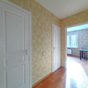 Удобная рациональная планировка с просторной гостиной и выходом из нее в кухню и прихожую. Огромная кухня 10,1м.кв. мечта любой хозяйки. Большая спальня с выходом в застекленную лоджию. Все окна (стеклопакеты ПВХ) выходят на южную сторону, поэтому квартира очень светлая. Ошеломительный вид на лес, детскую и спортивную площадку придает ценность загородной жизни в комфортной квартире. Потолок идеально ровный, на стенах обои, на полу уложен линолеум. Во вместительной ванной комнате есть стиральная машинка, на полу плитка. Кухня обустроена всем необходимым. Имеется небольшая комната 4.7м.кв. которую можно использовать как гардеробную.