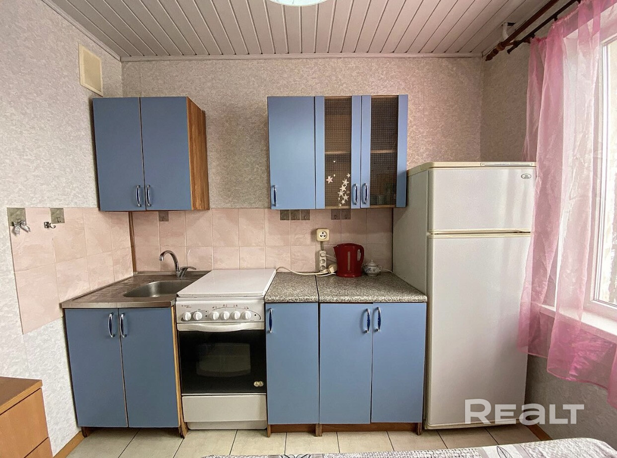Продается однокомнатная квартира по адресу: ул. Бурдейного, 25. Дом 1981 года постройки. Общая площадь составляет 29.6 кв.м., жилая комната – 11.3 кв.м., кухня – 7.2 кв.м. Квартира расположена на 2-м этаже девятиэтажного дома. Установлены окна ПВХ, напольное покрытие – ламинат и плитка, натяжной потолок в комнате. Раздельный санузел. Тамбур на две квартиры. Спокойные и адекватные соседи. Мусоропровод заварен. Развитая инфраструктура. Вблизи дома расположены: школы, гимназия, детские сады, поликлиника, магазины, торговые центры, рынок «Западный», банки, почта, аптеки, фитнес-клубы, спортивный комплекс, физкультурно-оздоровительный центр и многое другое. Удобное транспортное сообщение. Пять-семь минут пешком до станции метро «Кунцевщина» или «Каменная Горка». Большой поток наземного транспорта.