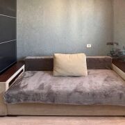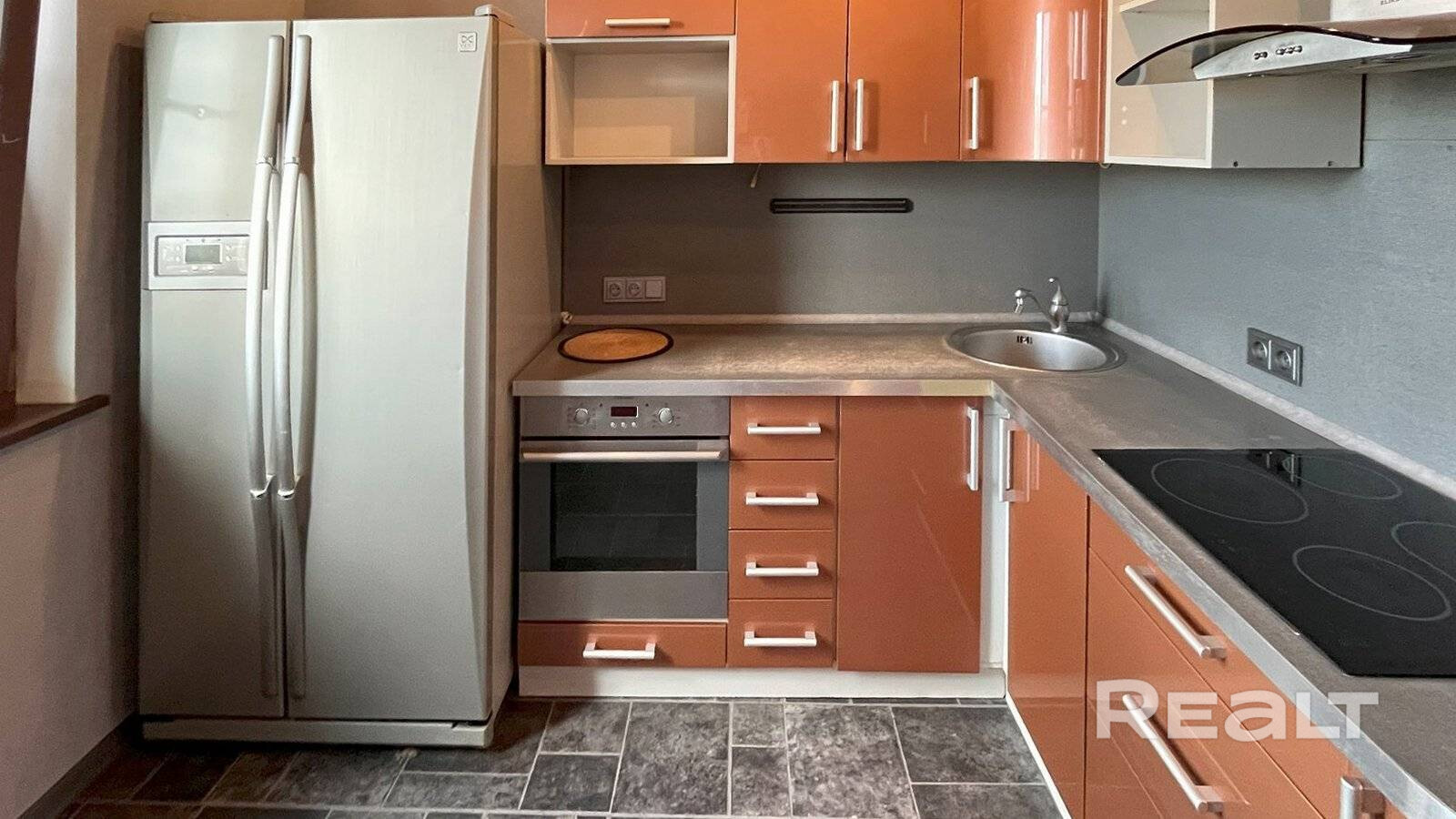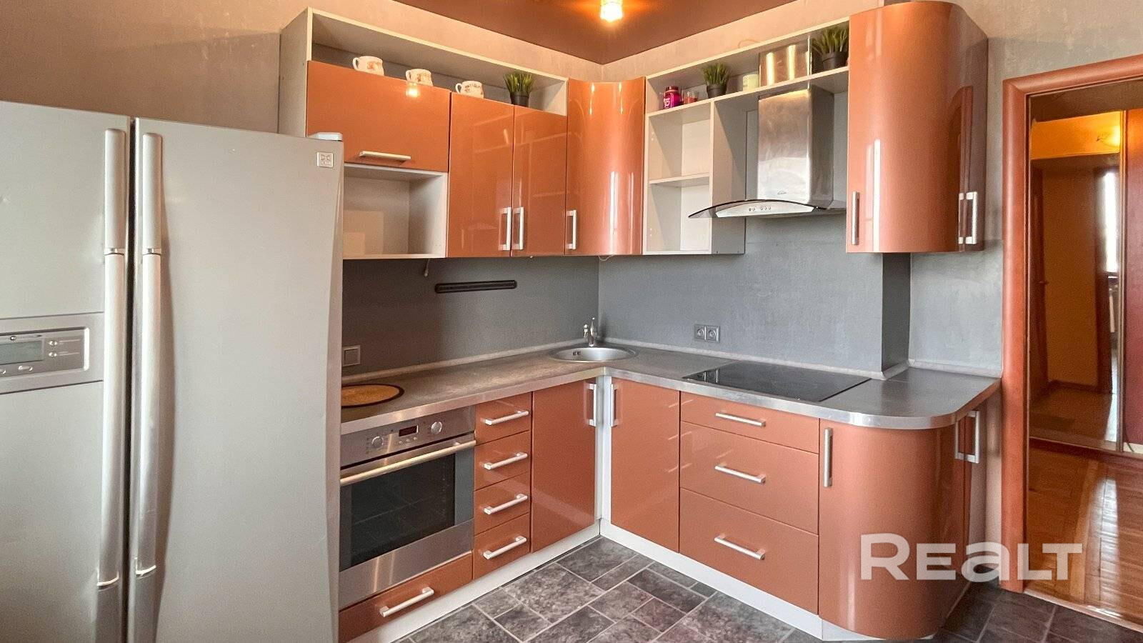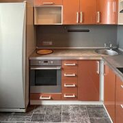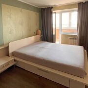 Нормальный ремонт: стеклопакеты, керамическая плитка в санузлах, встроенная кухня, шкафы - купе, металлическая входная дверь.