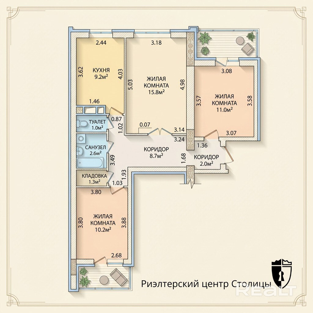Три комнаты (37 м2), которые можно превратить в детскую, спальню и кабинет.