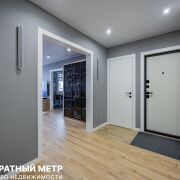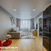 В квартире выполнен качественный ремонт в едином стиле и цветовой гамме из современных дорогостоящих материалов: напольное покрытие ламинат, стены оклеены обоями, потолки натяжные, межкомнатные двери МДФ крашенный на магнитных замках, окна ПВХ, входная дверь металлическая. Тёплый пол в ванной и кухне. В каждой комнате реализованы разные сценарии освещения, установлены сенсорные выключатели и розетки с USB и Type-C разъёмами.