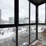 Просторная лоджия застеклена в пол.