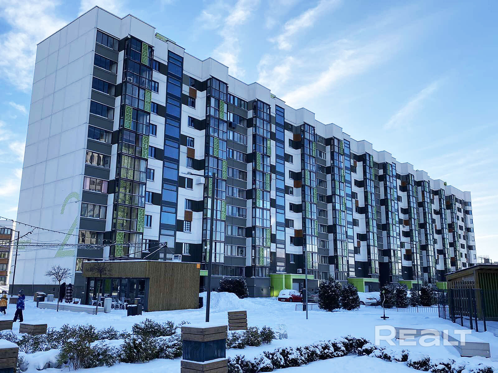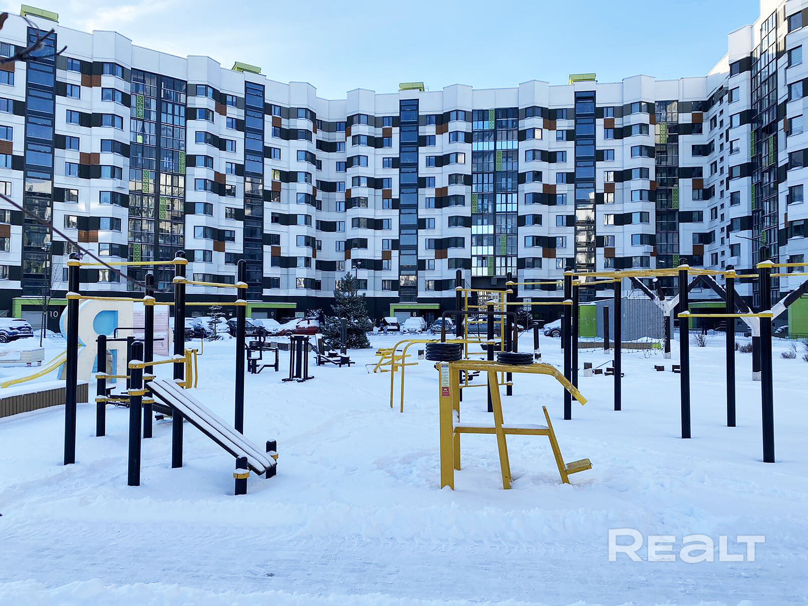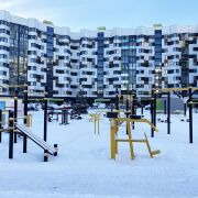 Во дворе расположены современные детские площадки, велобоксы и множество зелени. Парковка за шлагбаумом только для жильцов.