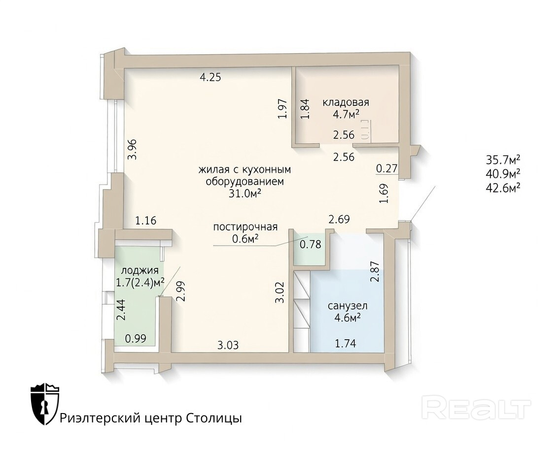 Кладовая внизу — это +3,3 метра к площади гардероба.