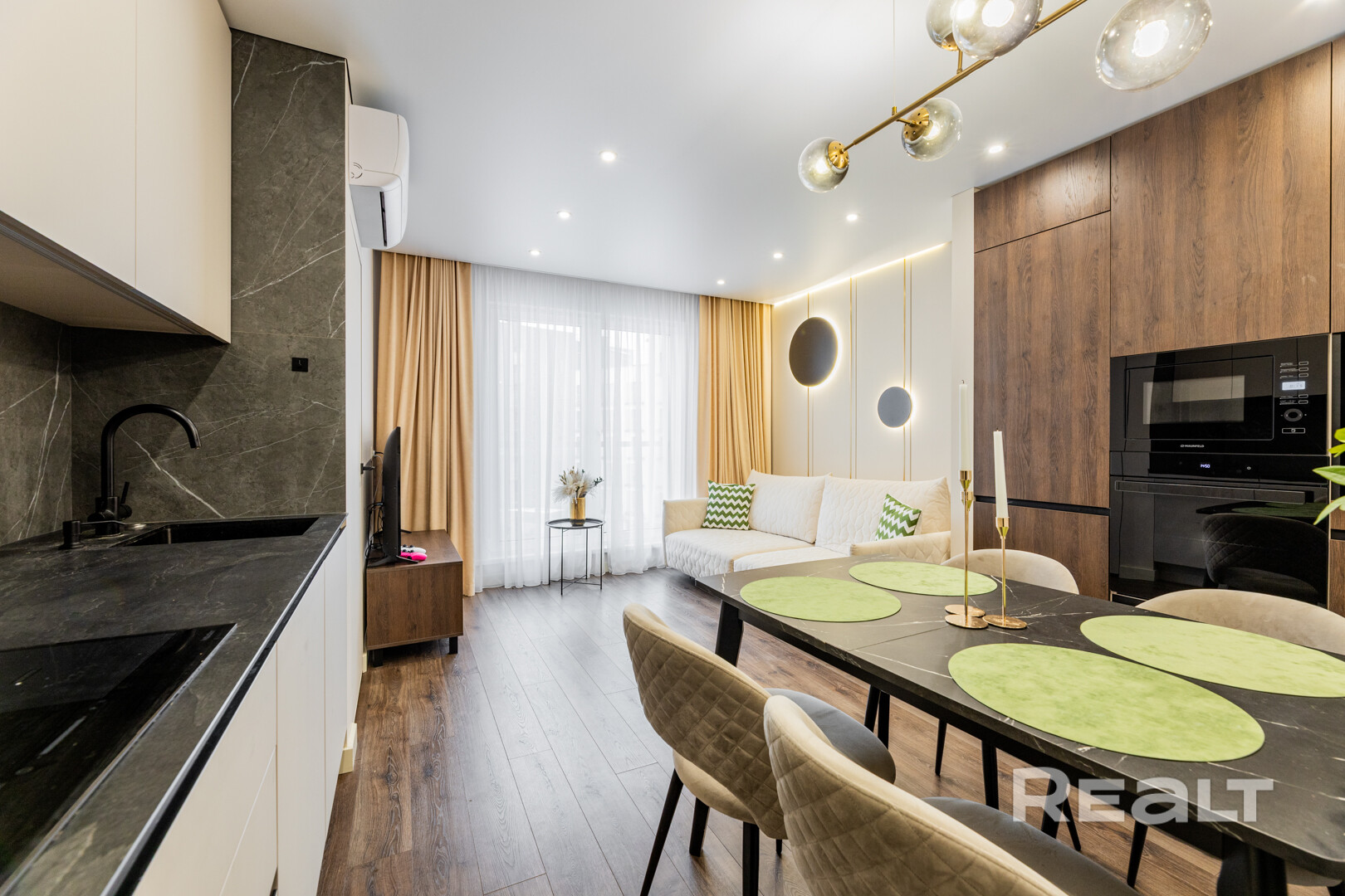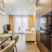 - кухня-гостиная 24.9 м2 оборудована всей необходимой современной техникой, дополнительно оснащена измельчителем, фильтром воды в том числе питьевой.