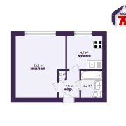 - Общая площадь квартиры 21,2 кв.м., при этом площадь жилой комнаты составляет 12,1 кв.м., площадь кухни -5 кв.м.- небольшая, но всё пространство организовано на высшем уровне.