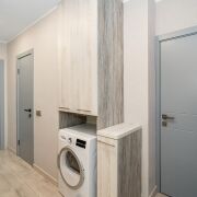 Квартира площадью по СНБ 88,8 кв.м., две спальни – 14,6 и 13,2 кв.м., кухня-гостиная – 30,1 кв.м. Вдоль всей гостиной – вместительный шкаф длиной 7,2 метра для хранения.