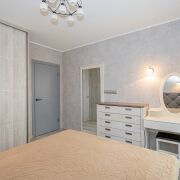 В спальне большая двуспальная кровать (220х200), туалетный столик, комод, встроенный шкаф.