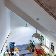 Потолки высотой до 4,95 м позволили обустроить мастер - спальню на антресоли.
