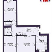 -Просторная планировка включает три изолированные комнаты, что даёт каждой из них уединение и свободу для обустройства. Окна квартиры выходят на две стороны, что обеспечивает хорошую инсоляцию.