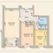 Просторная кухня, оборудованная итальянской техникой. Три встроенных шкафа-купе для хранения вещей. Утепленная и остекленная лоджия (дополнительное пространство). Металлические входные двери (квартирная и в тамбур). Стеклопакеты, окна выходят во двор — очень тихо и солнечно.