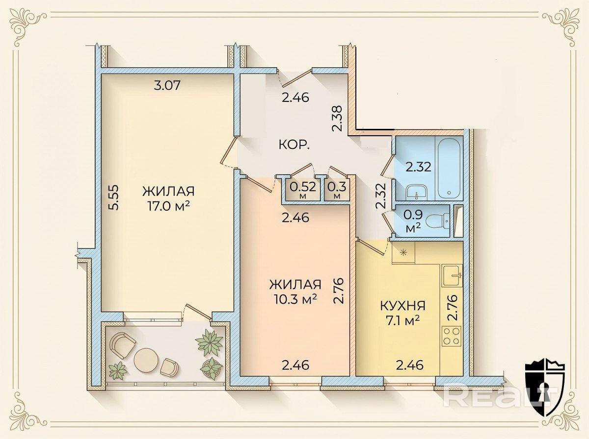 Утепленная и остекленная лоджия (дополнительное пространство).