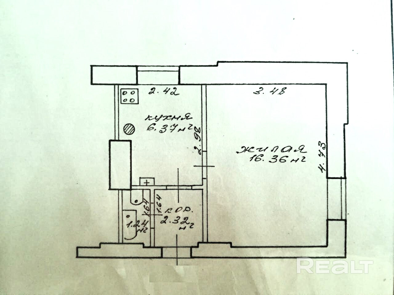 Жилая- 16,35 кв.м.