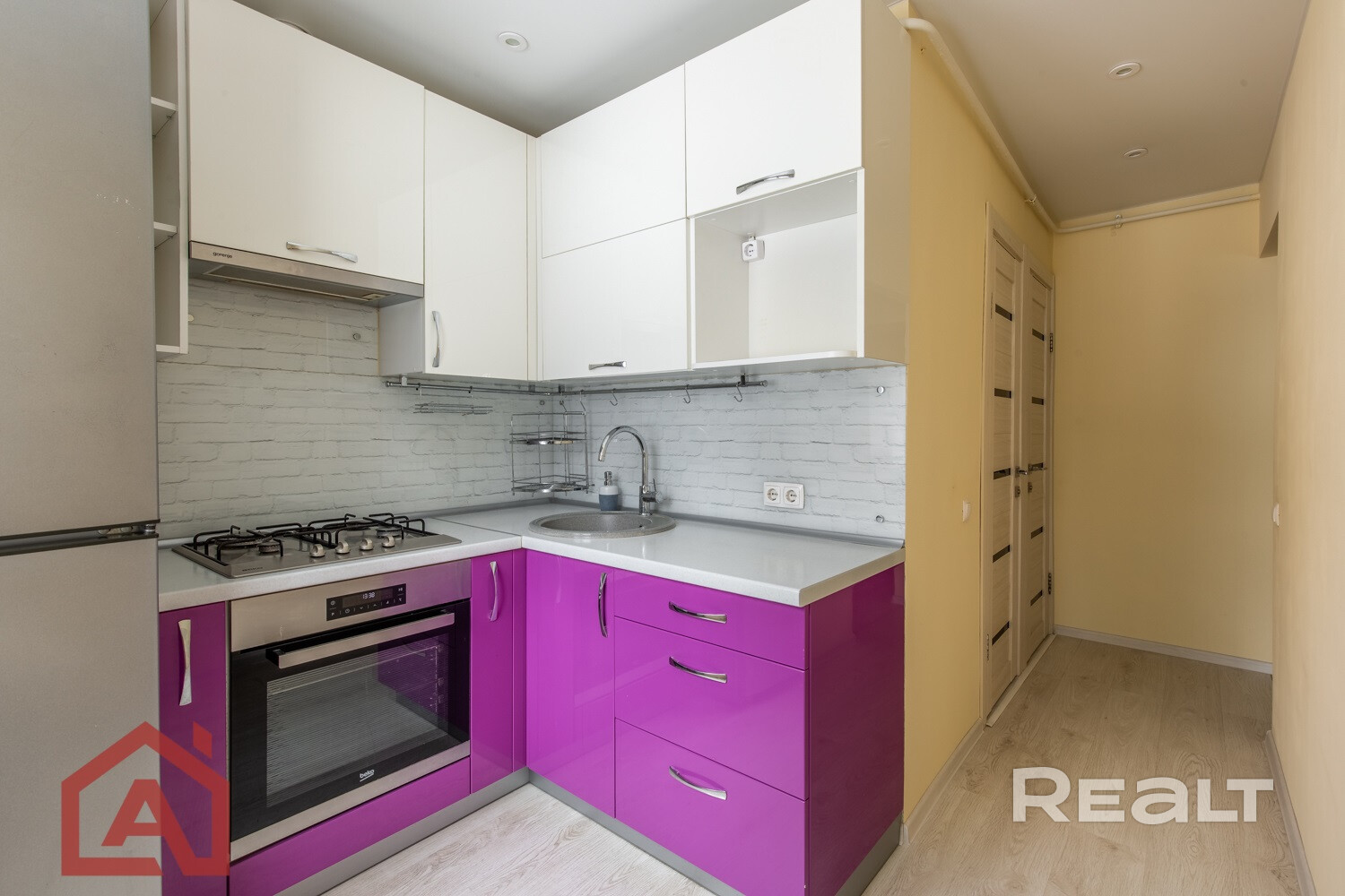 • Мебель и техника: Остается встроенная кухня с бытовой техникой, вместительный шкаф-купе и кровать.