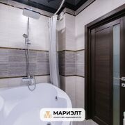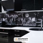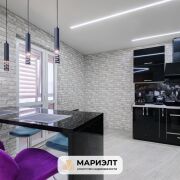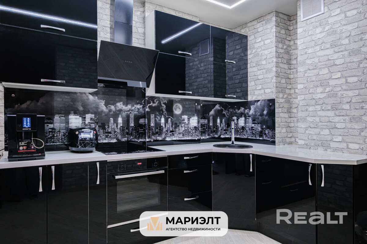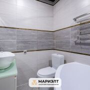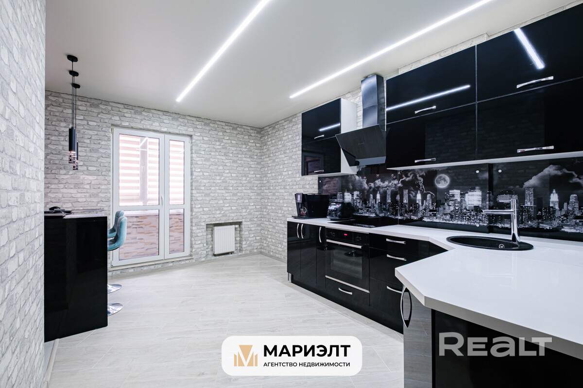 Площадь квартиры составляет 46,2 м2по СНБ. Она включает современную кухню, полностью оборудованную необходимой техникой, с установленной барной стойкой и вместительным шкафом-купе. На полу, в лоджии имеется плитка, с подогревом. В квартире также имеется просторный совмещенный санузел с большой угловой ванной, умывальником с тумбой и стиральной машиной.