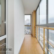 Функциональная планировка для  рационального использования пространства, удобные зоны для отдыха и работы. Панорамное остекление в пол большого балкона открывает потрясающий вид на город. Здесь можно организовать зону отдыха или расположить дополнительные места для хранения.