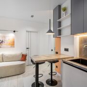 -Квартира очень удачной планировки, расположена на комфортном 12-ом этаже 19-этажного дома. -Планировка включает две жилых комнаты, одна из которых с выходом на застеклённую лоджию; кухню-гостиную с выходом на открытую террасу и совмещённый санузел. -Ремонт выполнен с применением качественных материалов. -Современная кухня с барной стойкой и встроенной техникой: духовой шкаф, варочная поверхность, вытяжка, холодильник. -Квартира также оснащена всей необходимой мебелью и техникой.