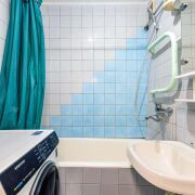 - Квартира имеет общую площадь 34,8 кв.м, из них жилая площадь составляет 16,9 кв.м, кухня 7,1 кв.м. Планировка позволяет рационально использовать пространство без избыточных проходных зон, что упрощает расстановку мебели и повседневное использование помещения.