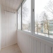 -Балкон обшит вагонкой, аккуратный и уютный.