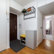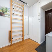 -В коридоре грамотно переделаны антресоли со шкафом — дополнительное место хранения без загромождения пространства.