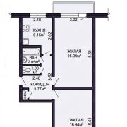 -Это одна из самых удачных планировок среди брежневок: две полноценные комнаты по 17 кв.м. шириной по 3 метра, все помещения изолированные, окна выходят на две стороны дома.