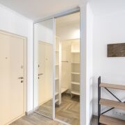 Полноценный гардероб со штангами и полками — редкость для квартир такого формата.