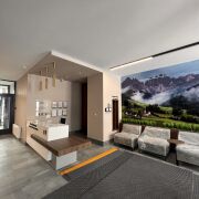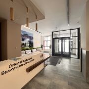 Просторное лобби, сквозные подъезды, пандусы, эксклюзивный дизайн, гранитные полы, гранитные порталы лифтов, художественное оформление стен;