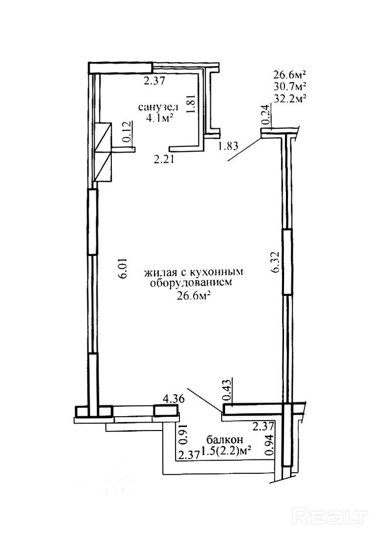Площадь 32,2м2 по СНБ свободной планировки в квартале "Центральный парк", ЖК «Minsk World»