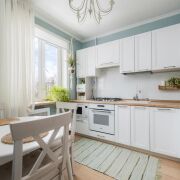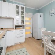 - Кухня оборудована гарнитуром из массива и бытовой техникой польского производства. В наличии холодильник, газовая плита, духовой шкаф и встроенная микроволновая печь, что закрывает основные бытовые потребности.