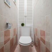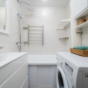 - Санузел раздельный и облицован современной плиткой. Установлены ванна и стиральная машина.