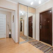 - В прихожей размещён вместительный шкаф купе и отдельный шкаф для верхней одежды, что упрощает организацию хранения.