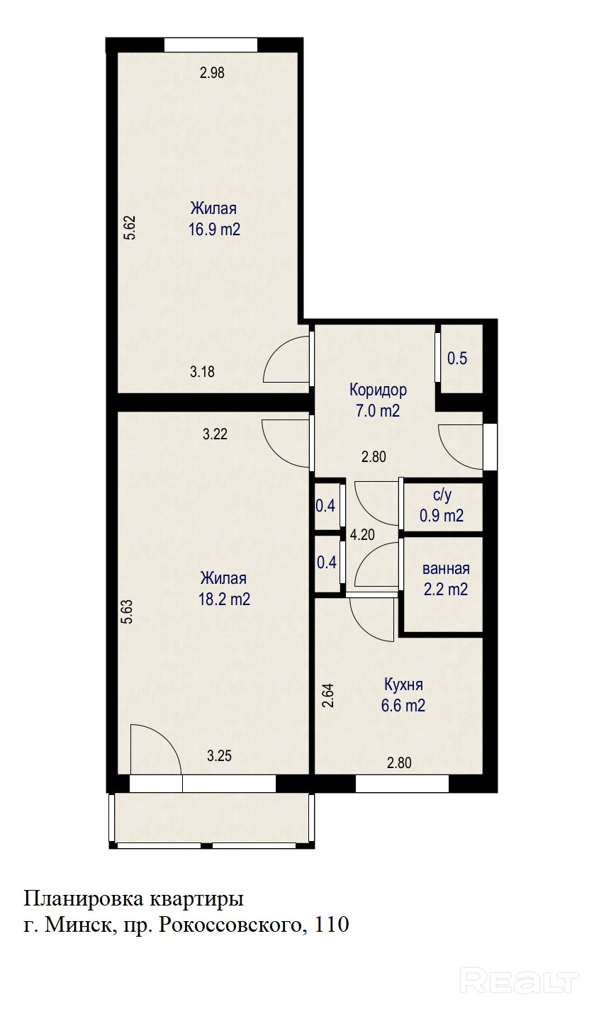 Продается 2-комнатная квартира по пр. Рокоссовского 110