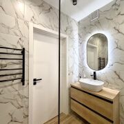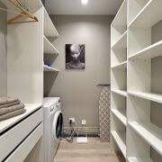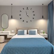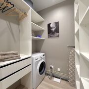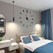 Квартира полностью меблирована и укомплектована необходимой бытовой техникой. Оборудована гардеробная зона, установлена двуспальная кровать — можно заехать и жить без дополнительных вложений.