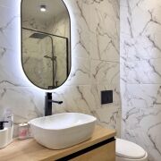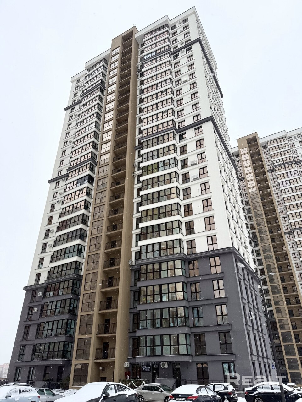 Квартира расположена на 22-м этаже 25-этажного дома 2023 года постройки. Общая площадь по СНБ — 34 м2, жилая с кухонной зоной — 23,9 м2. Высота потолков — 2,73 м, что добавляет пространству воздуха и света.