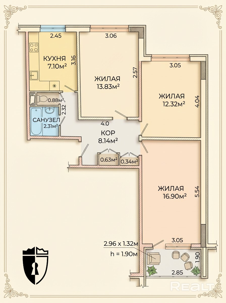 Три комнаты — все изолированные, планировка удобная для любой семьи.