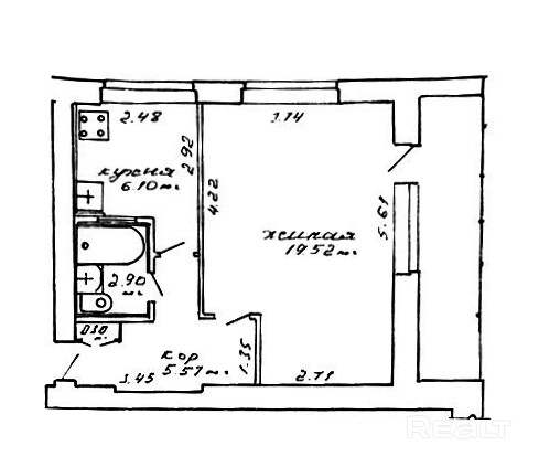 Жилая комната площадью почти 20 м.2 позволяет грамотно зонировать пространство .