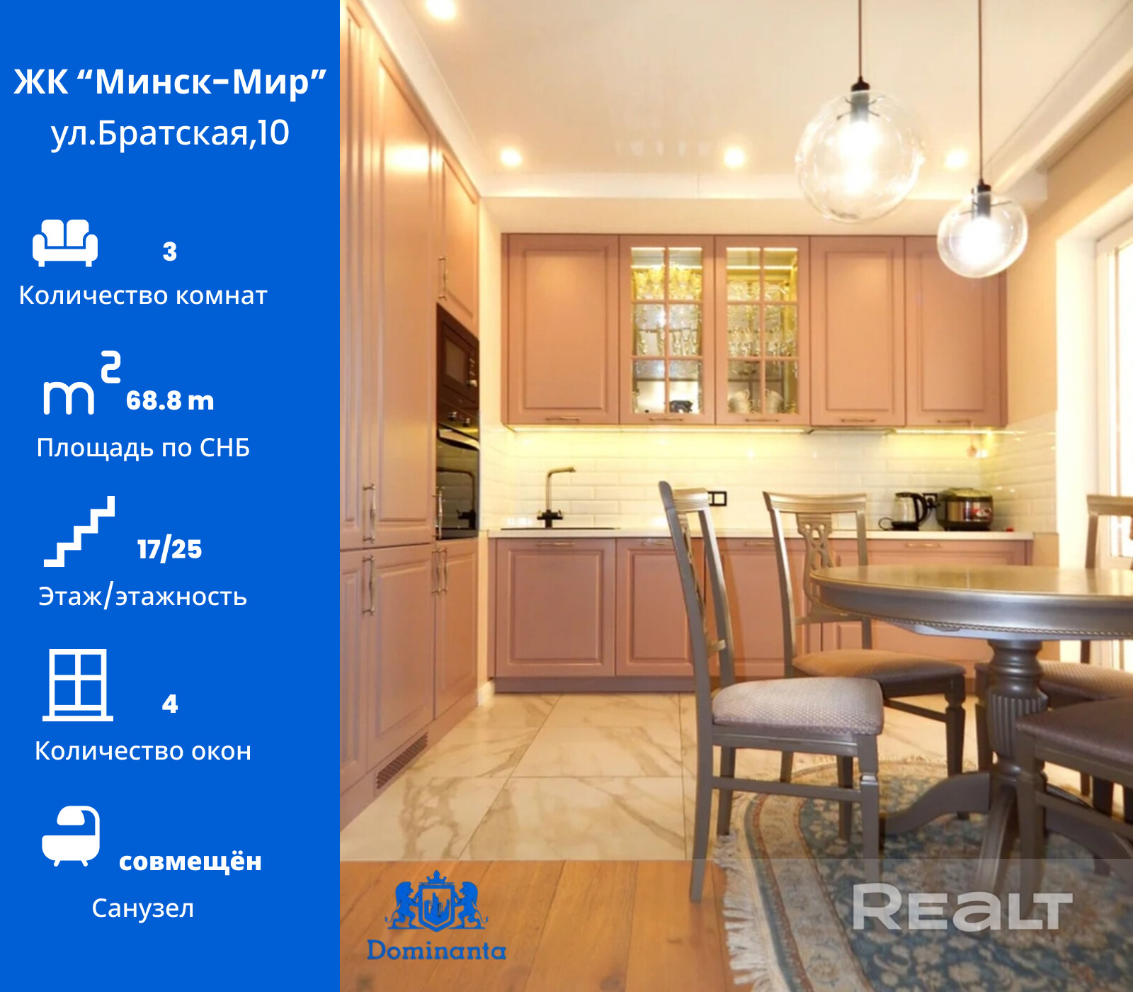 Купить 3-комнатную квартиру, г. Минск, ул. Братская, 10