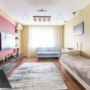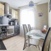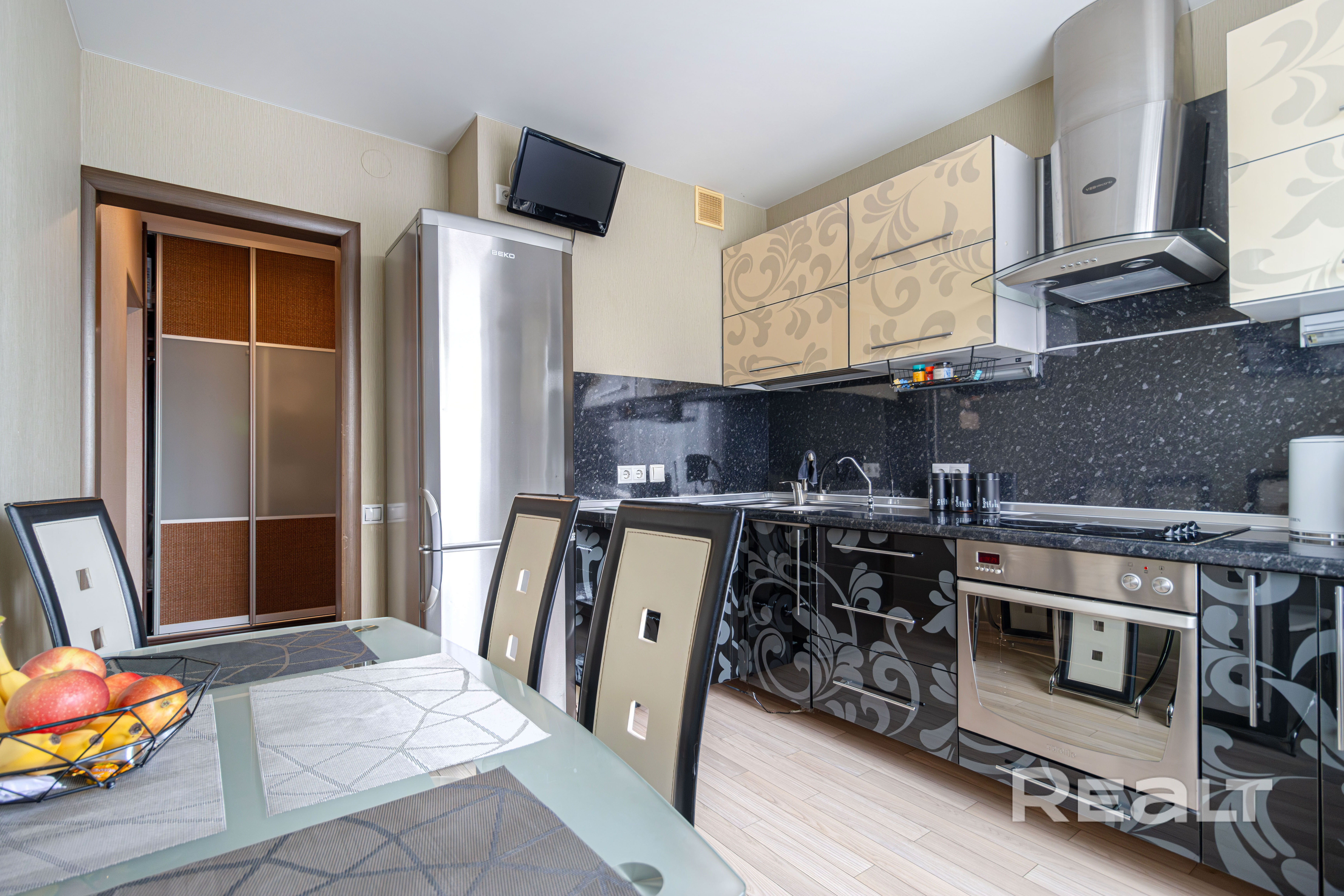Кухня обладает обширной рабочей зоной, а также большим количеством мест для хранения. Установлены доводчики, а также вся необходимая техника. Установлены новые батареи с терморегуляторами. Приятным дополнением является установленный бойлер в ванной, а также кондиционер в зале фирмы Panasonic. Имеется видеодомофон. Окна заменены на пластиковые стеклопакеты.